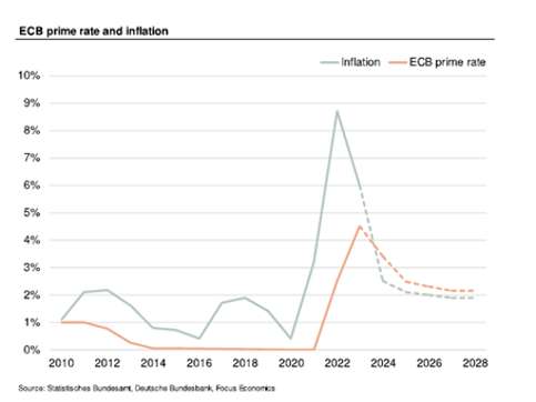 In Europa in 2022 bedroeg de inflatie 8,38%, in 2023 5,48%. Sindsdien is de inflatie weer gedaald naar 2,3% in november 2024. Dit gaf de ECB de ruimte om de rente weer te verlagen om zo een krimp van de economie te voorkomen. Vanaf de zomer van 2024 is de rente vijf maal verlaagd, telkens met 0,25%.