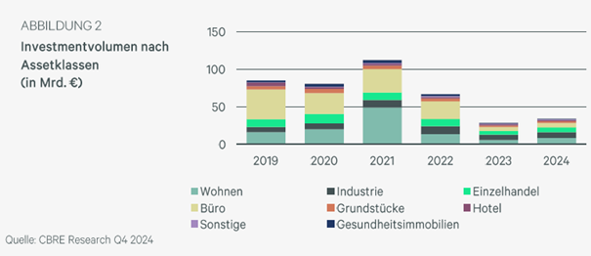 CBRE geeft in haar ‘Investmentmarkt Report’ van januari 2025 aan dat de periode van dalende vastgoedprijzen in Duitsland is afgesloten. Het zijn vooral institutionele beleggers en vastgoedbeleggingsfondsen die vastgoed aankopen in de huidige markt.
