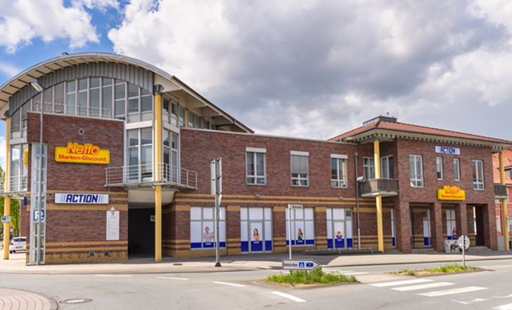 Het pand in Borken is een goed voorbeeld van een pand met verschillende type huurders. Van supermarktketen Netto tot discounter Action tot huurders van woningen.