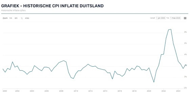 De scherpe inflatiestijging van de afgelopen jaren is inmiddels beteugeld door de dito renteverhogingen van de Europese Centrale Bank (ECB). Sinds juni 2024 heeft de ECB de rente geleidelijk weer verlaagd, nu de inflatie is gedaald.